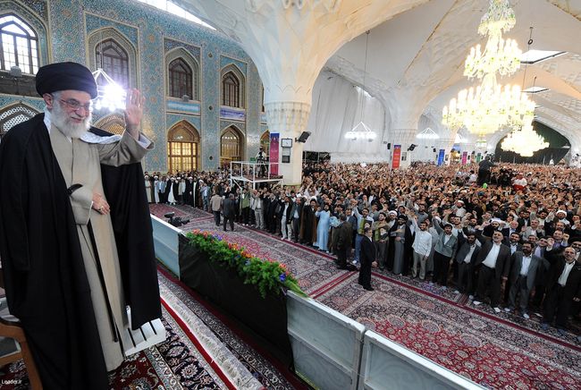 "یک شرط دیگر حفظ اتحاد و انسجام ملی است؛ انسجام ملی، اتحاد ملی. باید این اتحادی انسجامی که وجود دارد در میان مردم، در بین مردم و مسئولین، مردم به مسئولین خودشان علاقه مندند، به آن ها اعتماد دارند به آن ها کمک می کنند، به آن ها همراهی می کنند، بین خود مردم اتحاد و وحدت وجود دارد؛ این بایستی باقی بماند و روز به روز تقویت شود. یکی از نقشه های بزرگ دشمنان ملت ایران، ایجاد تفرقه و شکاف در داخل بوده است، به بهانه ی قومیت به بهانه ی مذهب، به بهانه ی گرایش های سیاسی، به بهانه ی جناح بندی ها، به بهانه های گوناگون. [این هم قابل توجه همه، مخصوصاً تاجیک ها، قدیانی ها و احمدی نژاد ها که همه را غارتگر، دزد و مصادیق بی بصیرت ننامند و بدین ترتیب مردم را به صدر تا ذیل مسئولین و نظام بد بین نکنند.] خوشبختانه ملت ما آگاهند، همه ی کسانی که به کشورشان علاقه مندند، به نظام مردم سالاری دینی که مایه ی افتخار امروز ملت ایران است علاقه مند هستند، همه باید با هم هماهنگی داشته باشند. مسئولین کشور هم همین جور. مسئولین کشور هم باید سعی کنند اگر گله ای از هم دارند، که گاهی ممکن است این گله ها به حق هم باشد، این گله را در معرض افکار عمومی مطرح نکنند. این ضربه ی به اتحاد ملی است. من به مسئولین کشور به طور جد این را تذکر می دهم، هشدار می دهم... . [این هم قابل توجه رئیس جمهور محترم که وقت و بی وقت از قوه ی مقننه و از دیگران در مصاحبه های تلویزیونی و نشست های خبری گله نکند و آن ها را به قول خودش متهم به بداخلاقی نکند.]